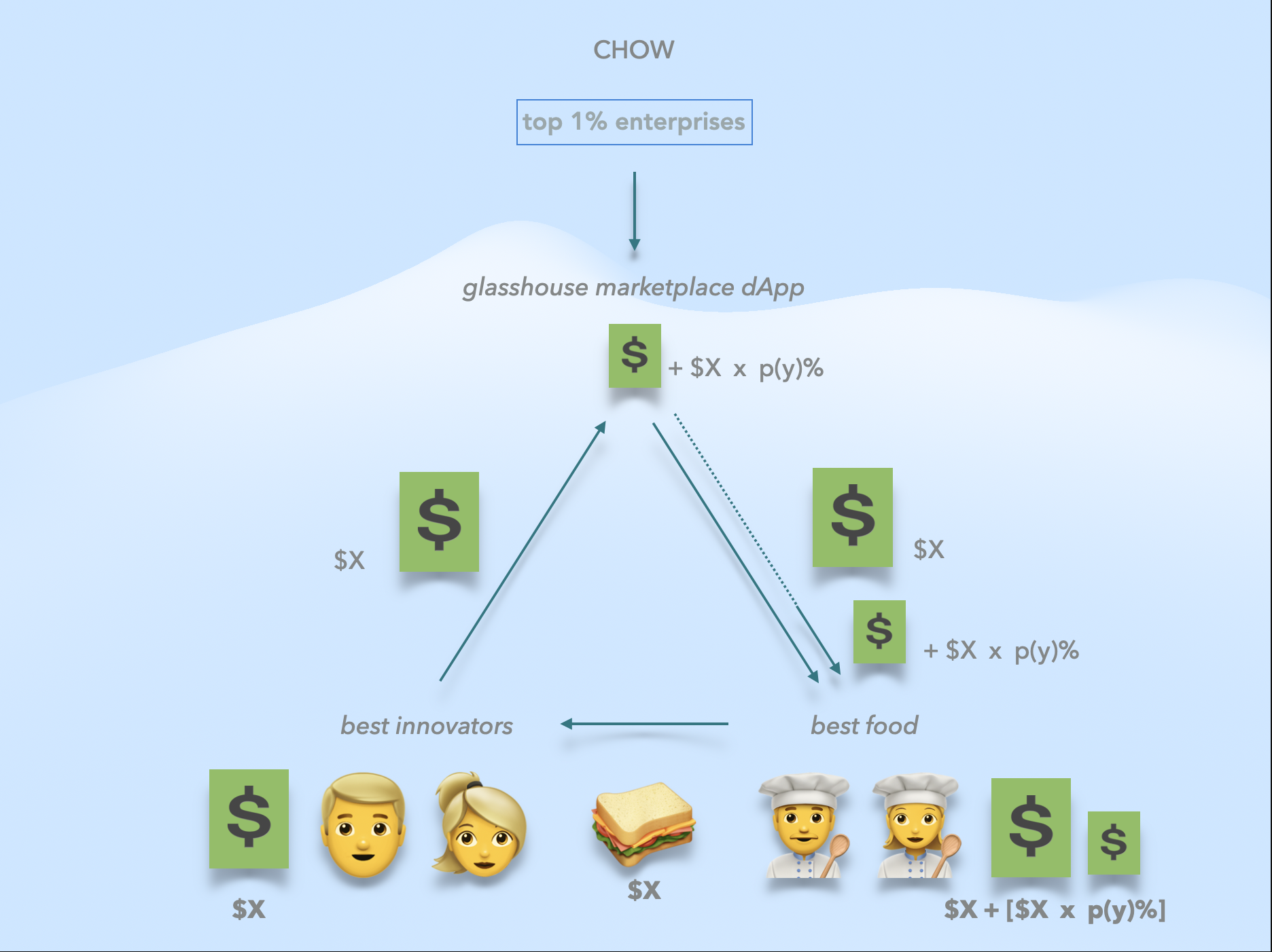 CHOW capital throughput demonstrates how all in-arena glasshouse enterprises can deploy a trade fee distribution strategy to extend and embed wealth. This formalizes the strongest possible asset-to-flow demand pull incentive.