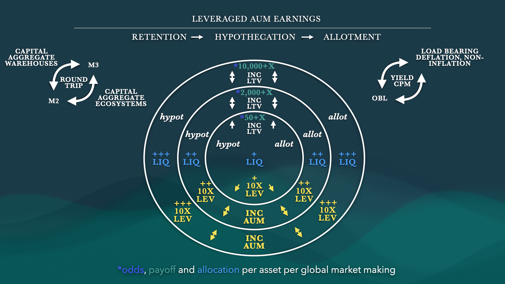 Subsequent upstream product instantiations in a 3D financial schema include ‘accounting artifacts’ as zones of throughput to which revenue bloat is allocated. These ‘capital formation enterprises’ are allocated continuously based on large leverage bandwidth hurdles in the continuum and planned, at-scale post-industrial reformat.